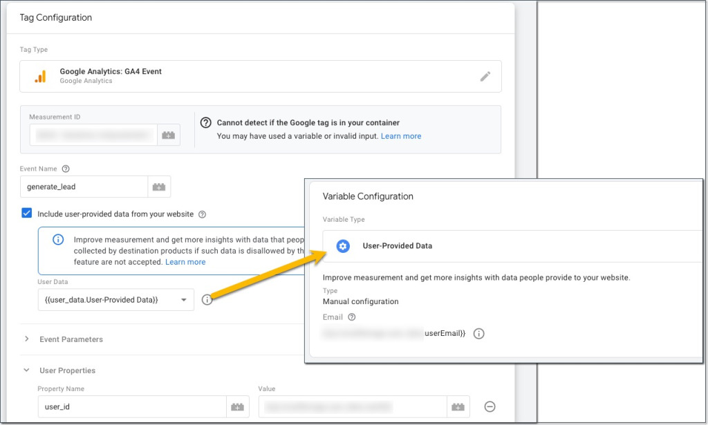 Tanto en Google Ads (Enhanced Conversions) como en Facebook (Conversion Lead), es crucial enviar datos del usuario para optimizar el seguimiento y la atribución de conversiones. Una de las variables clave en este proceso es el correo electrónico del usuario, que permite a estas plataformas realizar un rastreo más preciso y atribuir conversiones de manera confiable.